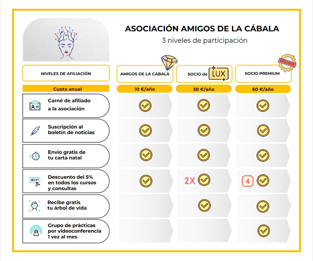 Solo por ser miembro de Amigos de la Cábala recibirás tu carta natal gratis y podrás beneficiarte de descuentos de entre el 5% y el 20% en las